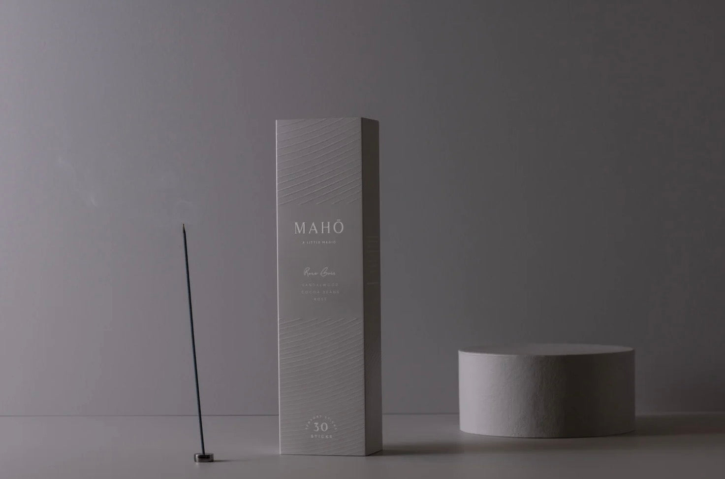 Encased in a glass tube for portable take anywhere burn. MAHŌ button burner included